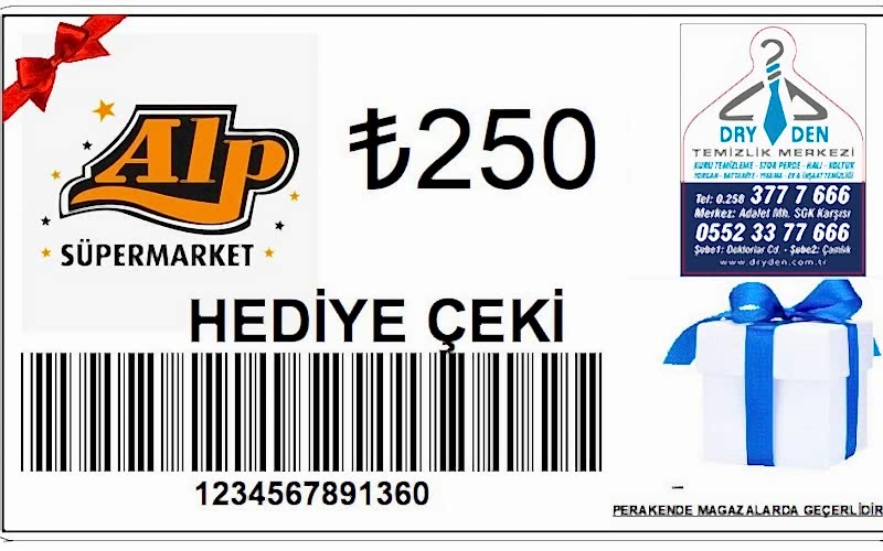 Her ay bizi tercih eden müşterilerimiz arasında kura çekimi yapıp şanslı müşterimize Alp Süpermarket'ten 250 TL değerinde hediye çeki takdim ediyoruz